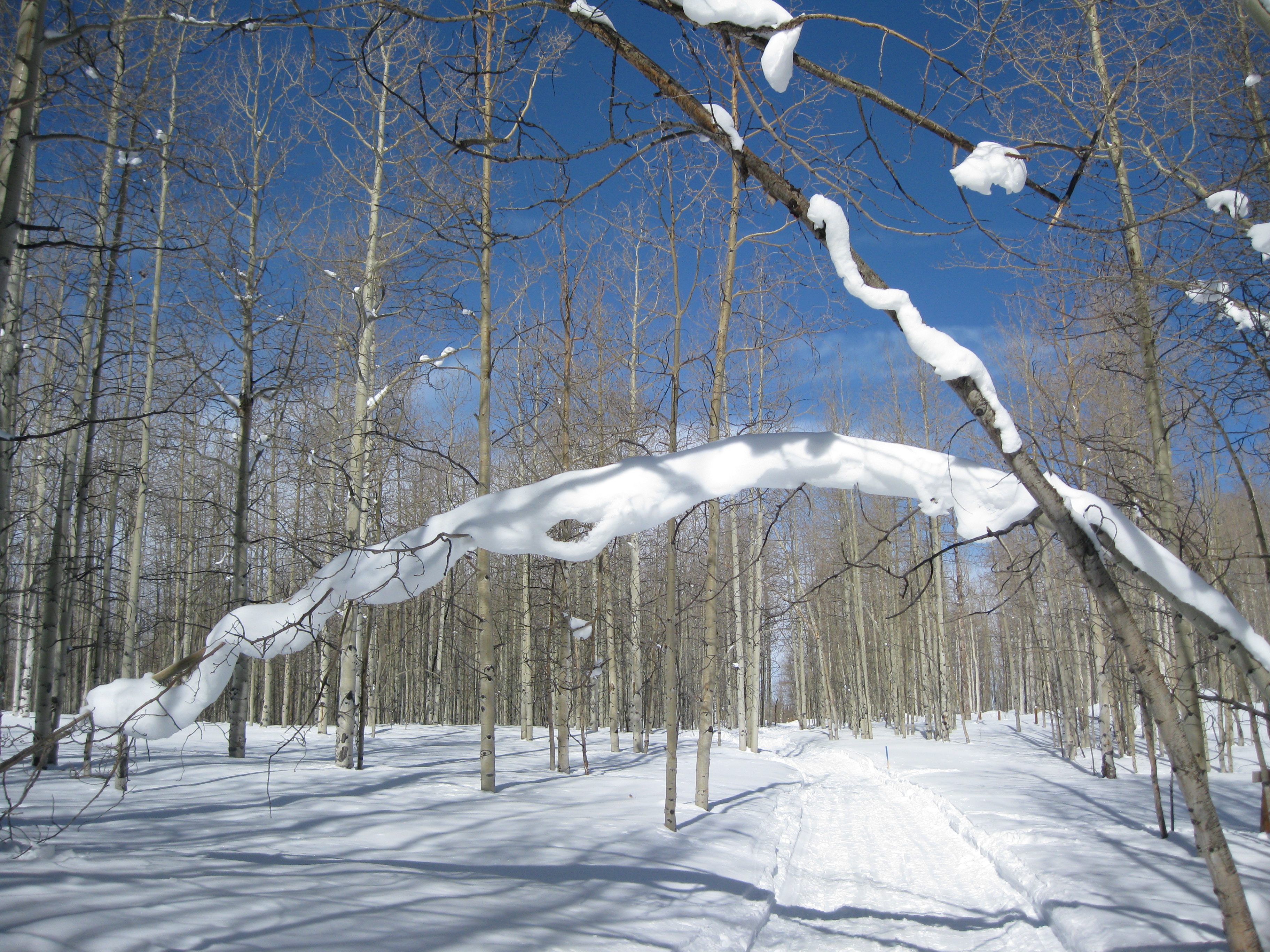 made signs will mar your trip. Upon reaching a snow covered parking lot at 9,600 feet above sea level, prepare to ponder the crystalline strength of snow, the inspiration of healthy trees, the sparkle of sunshine easily piercing the pure air, and silence. Where are the animals? How did the Northern Utes survive in temporary shelters? How can we preserve the White River National Forest? Can you continue on these mysterious trails while appreciating each moment?