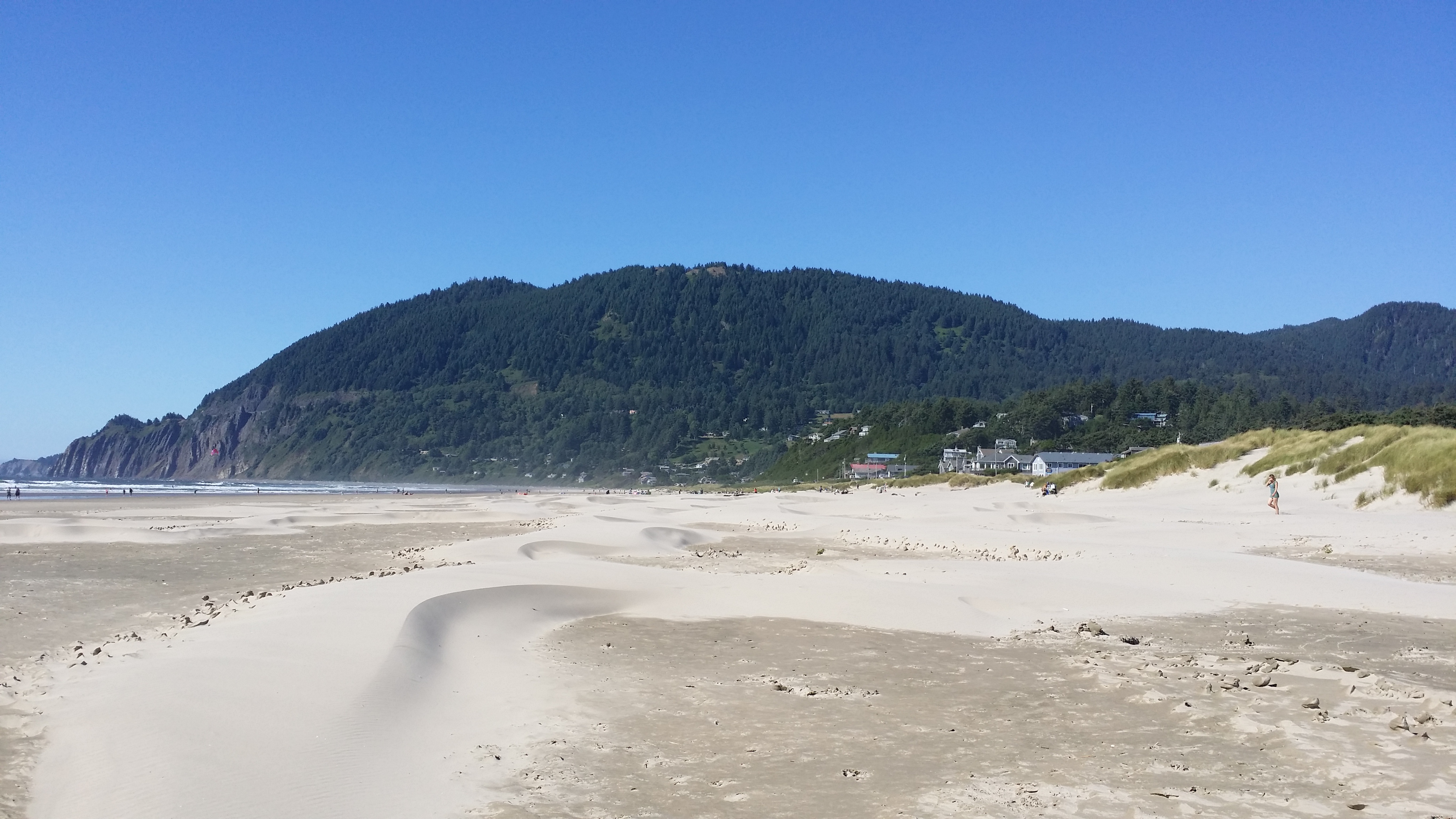 The real treasure of Neahkahnie is the view from the peak. You might make a loop by hiking from the north or south, continuing down the other side and returning to your start by walking one mile along Highway 101.